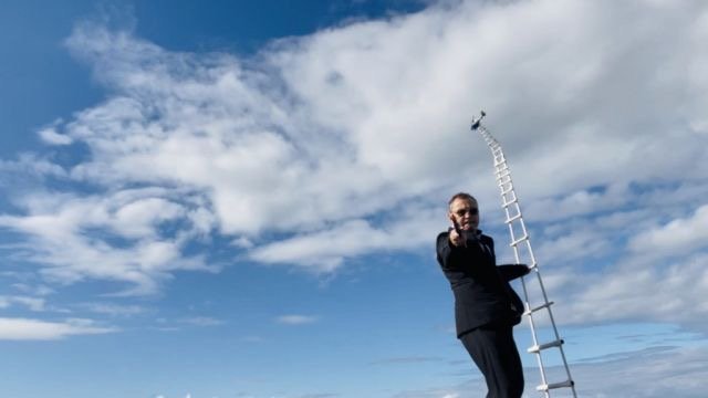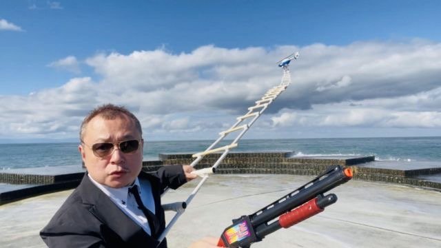 遠近法を使った工作でヘリコプターで逃げ去るシーンの撮影に成功しました?