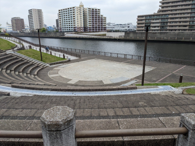 隅田川沿いにある散歩道、荒川遊園地の裏にはステージを兼ねているところがああり、写真の通りに何も無い所なので通常転ぶはずも無いのだが、この白い地面に白いモルタルかコンクリが薄らと落ちていて、それを気付かず踏んでしまい目の前の景色が急に空に変わる勢いで転びました。 川の工事をしている車両から落ちて誰も気が付かなかったのか片される事も無くそのままだったので、数年経った今も踏んだ時の足跡が残っていて、見かける度に転んだ瞬間の「あ!これ救急車レベルか!?」という恐怖を思い出します。