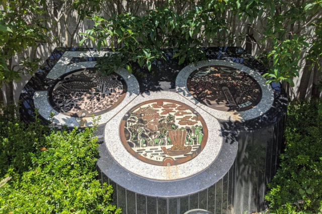 一瞬ミッキーかなと思ったんですがよく見たらマンホールの蓋で、しかも500と書いてありました。 あとで詳しい人に聞いたところ、岡崎市の下水道管の延長が 500km になった記念なんですね。市内で見られる蓋のデザインが勢揃いしてます。 岡崎市ではマンホール蓋のデザインに著名な方を起用したりもしていますが、こういう地味な蓋もいいよなあと改めて思います。