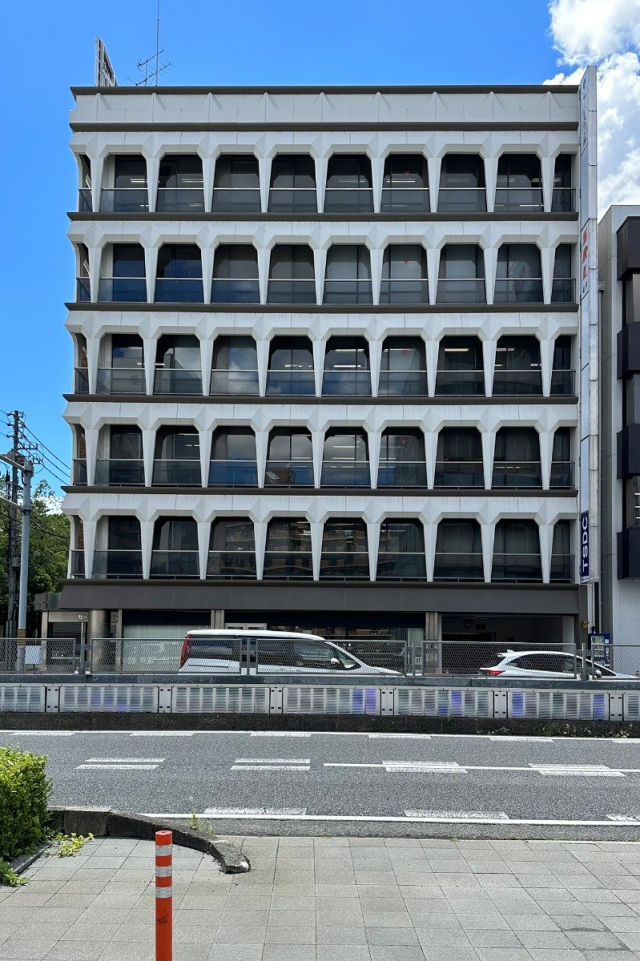 楔形の装飾(シェード?)がカッコいいオフィスビル。内側からの見え方も気になります。
