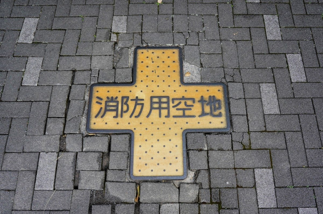 地面からメリッと顔を出している感じがかっこいい 「消防用空地」の書体とリベット調のパターンもかっこいい。粋な鋳物の良さを堪能できます。