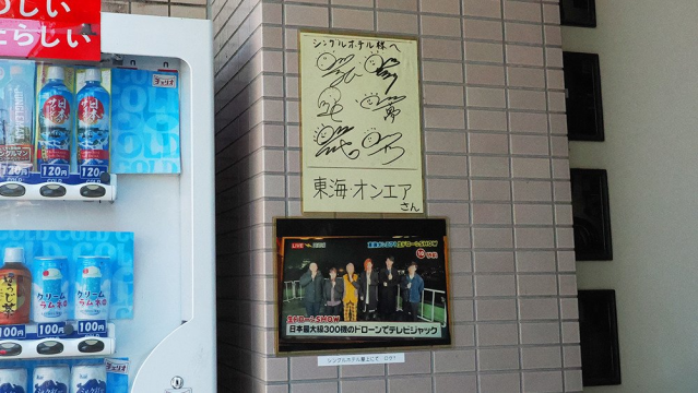 岡崎市に拠点をおく大人気YouTuber東海オンエアのサインが、ホテルの駐車場に唐突に貼られていました!実はこの時点では東海オンエアをよく知らなかったのですが、帰りの新幹線で動画を見てみたのをきっかけに、今さらながらドはまりしています。見た事ない人見た方がいいですよ。そんな東海オンエアのサインが気軽に見られるシングルホテルはおススメスポットです。