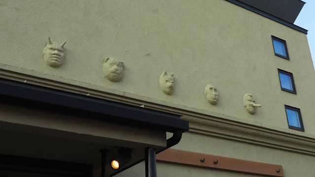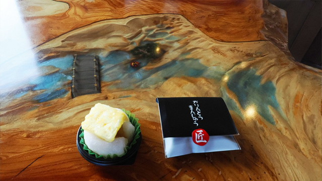 お土産を探していたところ見つけた「おとぎの蔵 豆の樹」。おとぎ話をモチーフにした和菓子がいろいろ並んでいて人気のようなのですが、お店じたいもおとぎ話がちりばめられていて素敵でした。壁に浮き出ている鬼や天狗、犬?たちはなんともいえない表情でかわいらしい。外にあるテーブルも、よく見たら一寸法師がいました。パイナップル大福と、かりんとう饅頭をいただきました。めちゃくちゃ美味しかったです。