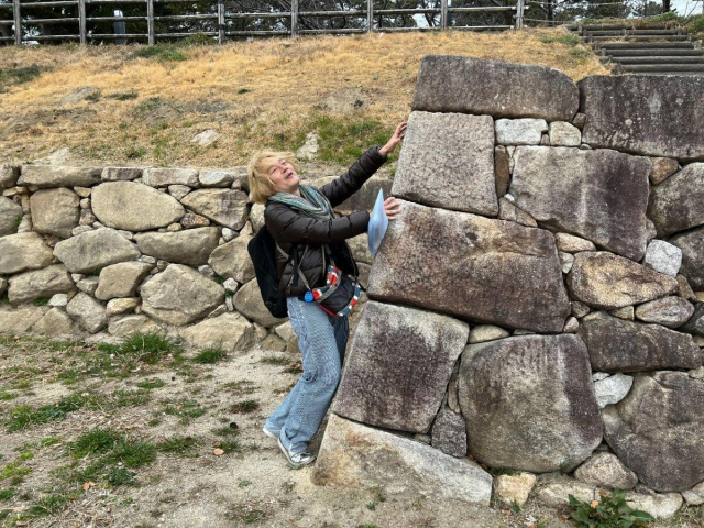 乙川のほとりにあった石垣は途中で角度が急になっています。下のほうは70度ですが、上になると80度でほぼ直角。これだと侵入者が石垣を登ろうとしても途中でひっくりかえってしまいます。 鉄壁の守りです。